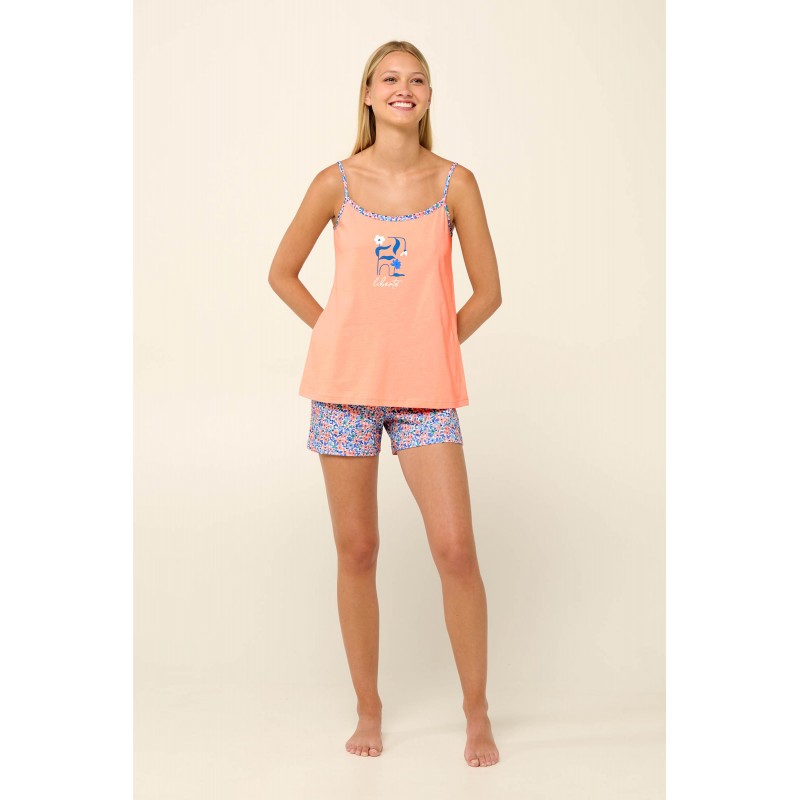 Vamp Γυναικεio Βαμβακερό Baby Doll Με Εμπριμέ Σορτς Salmon