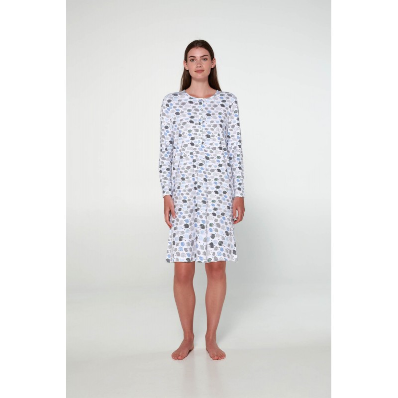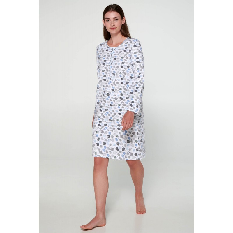Άνετο Νυχτικό σε υπέροχο σχέδιο με all over print σκαντζοχοιρακια της εταιρείας Vamp .Διαθέτει κουμπάκια μπροστά ώστε να επιτρέπεται ένας εύκολος θηλασμός .Ιδανικό πατρόν για μεγάλα μεγέθη κατασκευασμένο από εξαιρετικής ποιότητας βαμβακερό ύφασμα interlock, φιλικό στο δέρμα .Μήκος: 95 cm.