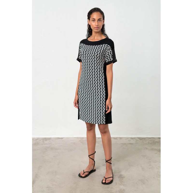 Vamp Γυναικείο Φόρεμα Midi Με Κοντό Μανίκι Απο Viscose Με Ασπρόμαυρο Σχέδιο