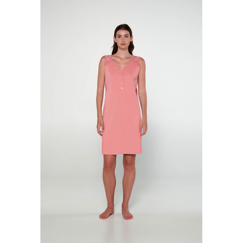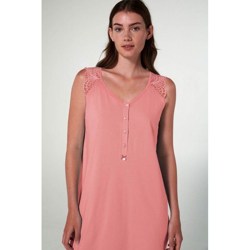 Vamp Γυναικείο Νυχτικό Αμάνικο Βαμβακερό Με Δαντέλα Στους Ώμους