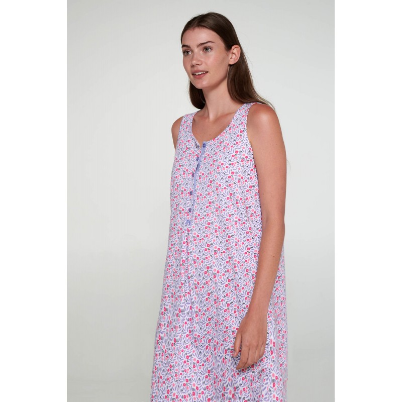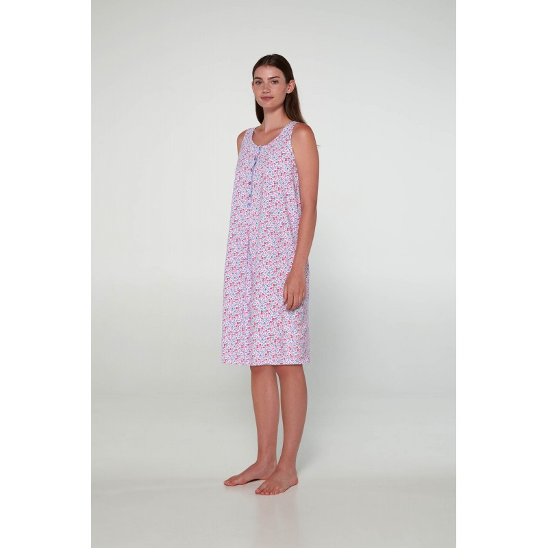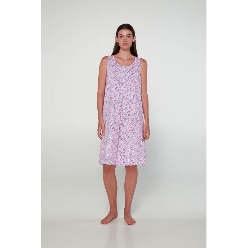 Vamp Γυναικείο Νυχτικό Αμάνικο Βαμβακερό Με Πατιλέτα & Πιέτα Φλοράλ Σχέδιο