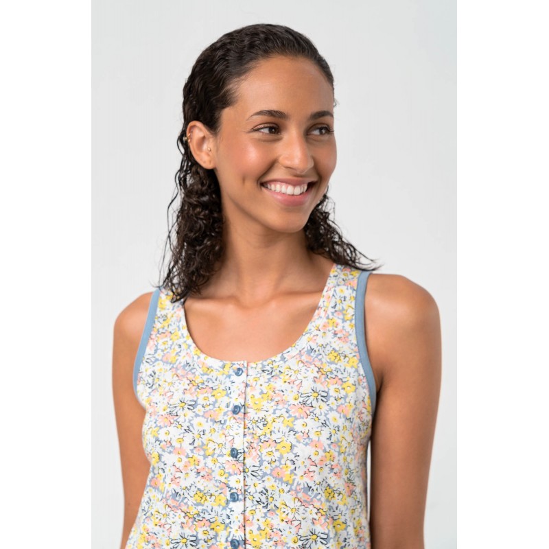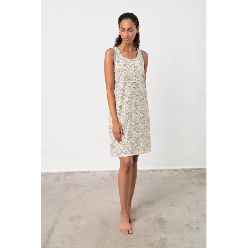 Vamp Γυναικείο Νυχτικό Αμάνικο Βαμβακερό Με Σχέδιο Λουλούδια