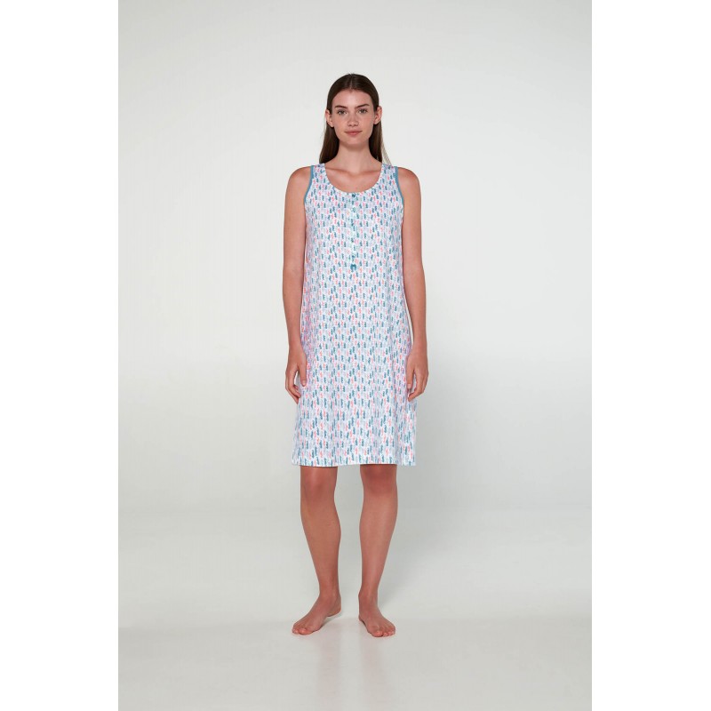 Vamp Γυναικείο Νυχτικό Βαμβακερό Αμάνικο Με Πατιλέτα Σχέδιο Ιππόκαμπους