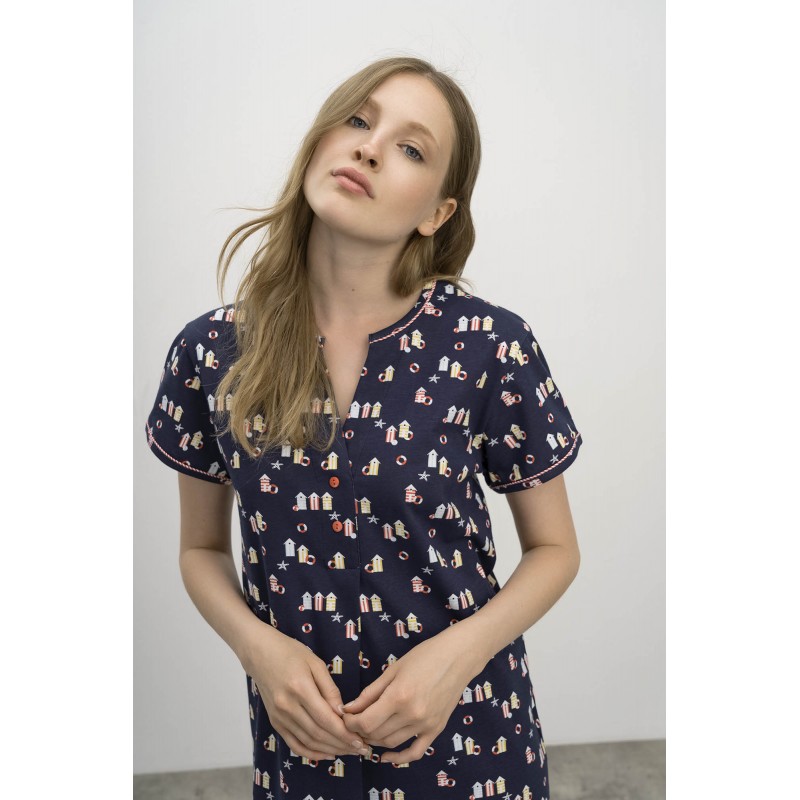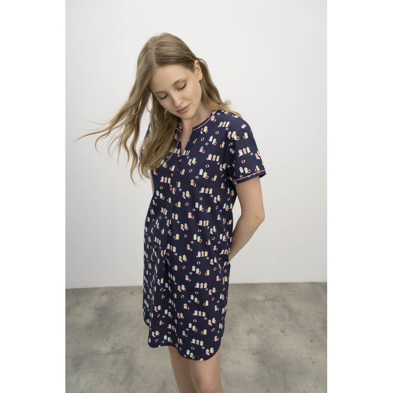 Vamp Γυναικείο Νυχτικό Κοντό Μανίκι Με Λαιμόκοψη V Σχεδιο Σπιτάκια