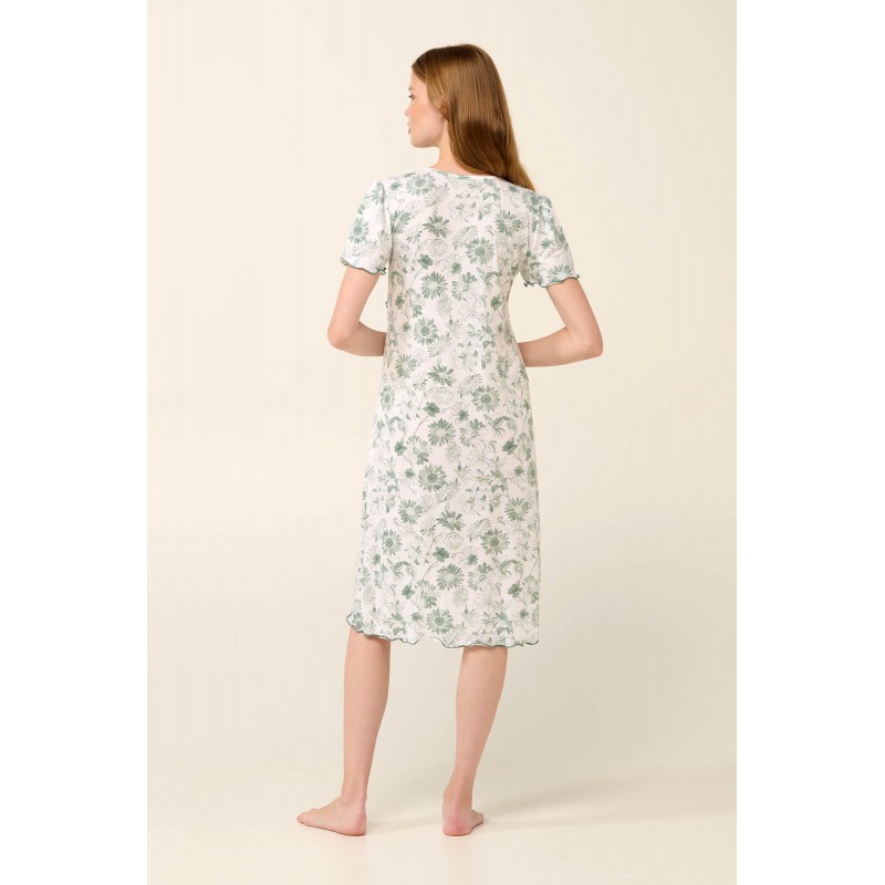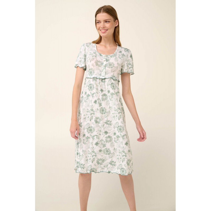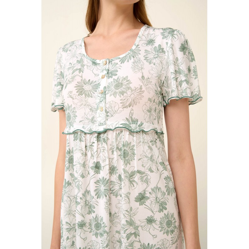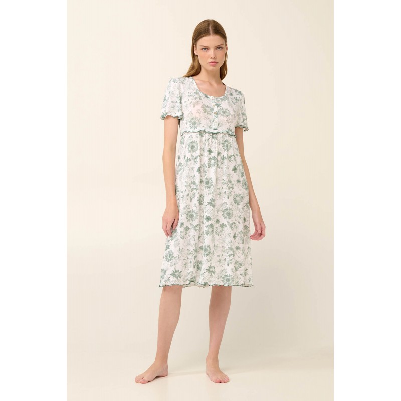 Vamp Γυναικείο Νυχτικό Micro Modal Εμπριμέ Κοντό Μανίκι Με Πατιλέτα Blue Matcha