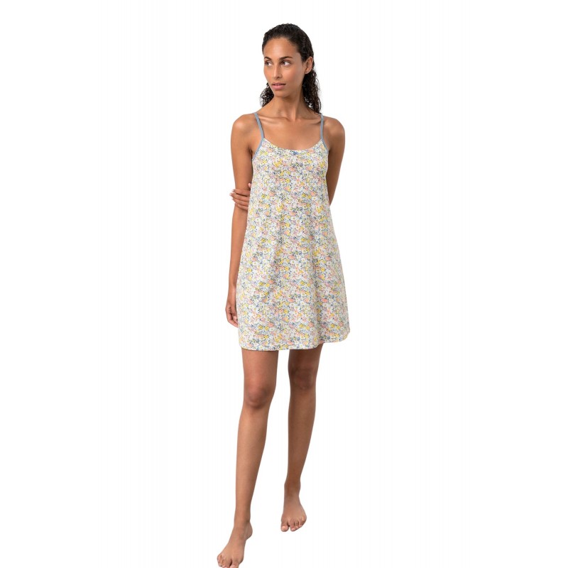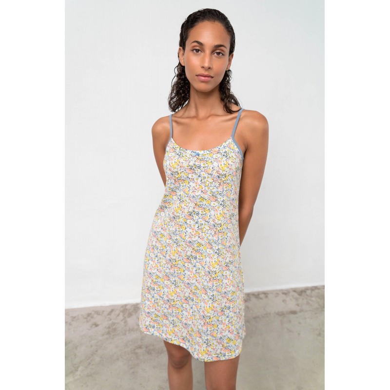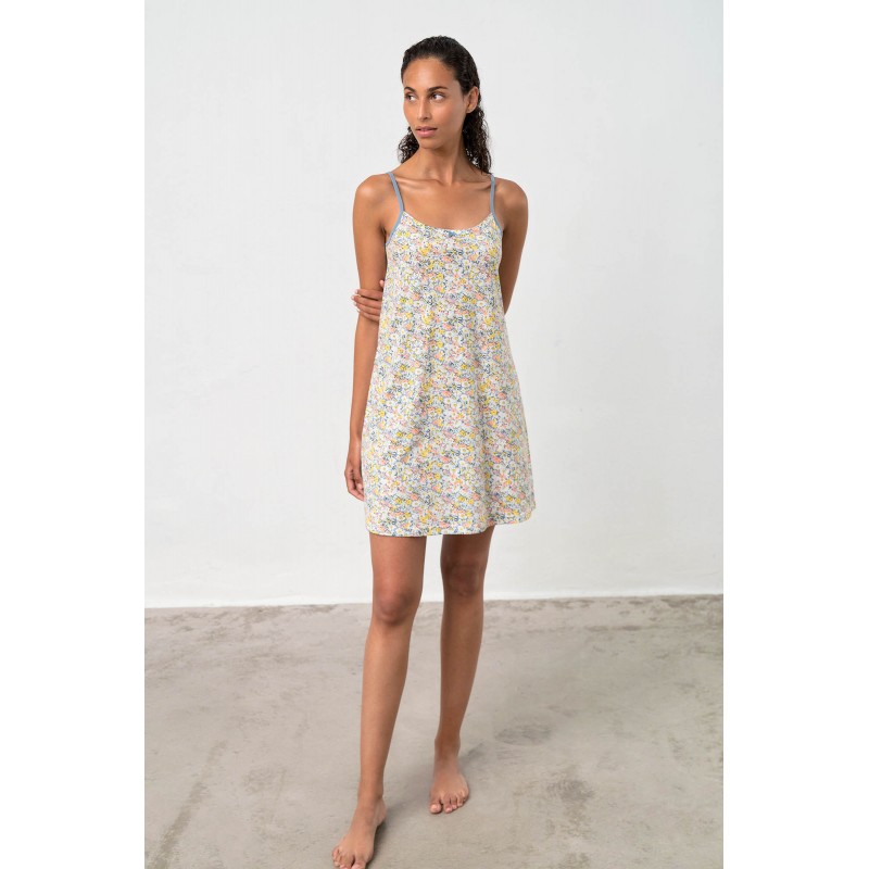 Vamp Γυναικείο Νυχτικό Νεανικό Βαμβακερό Κοντό Μήκος Με Τιράντα Σχέδιο Λουλούδια