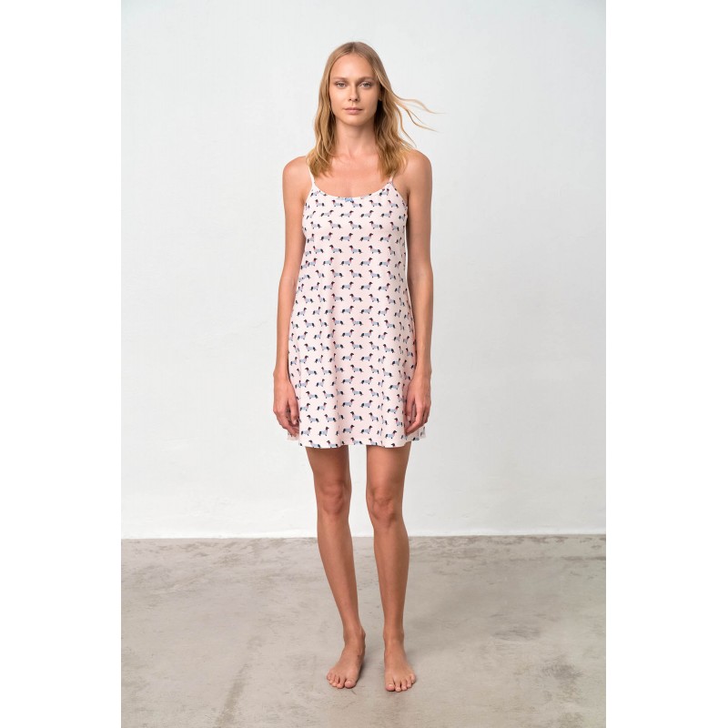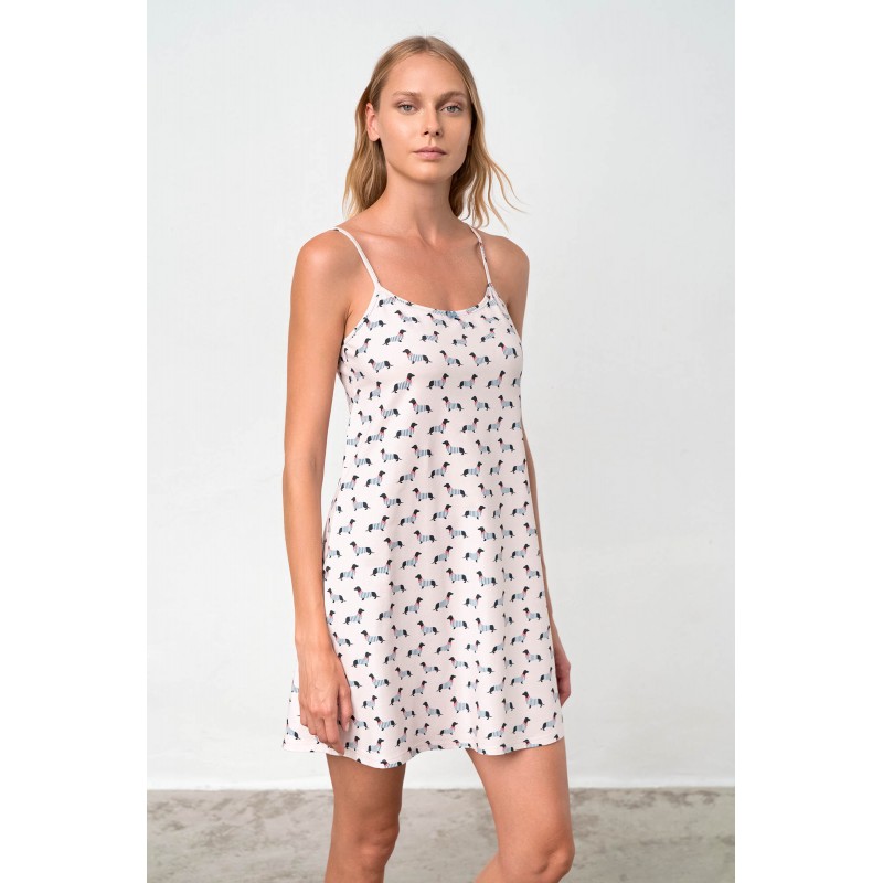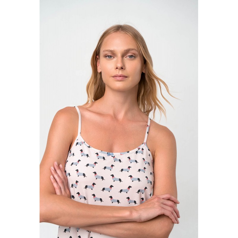 Vamp Γυναικείο Νυχτικό Νεανικό Με Λεπτό Ραντάκι Σχέδιο Σκύλακια