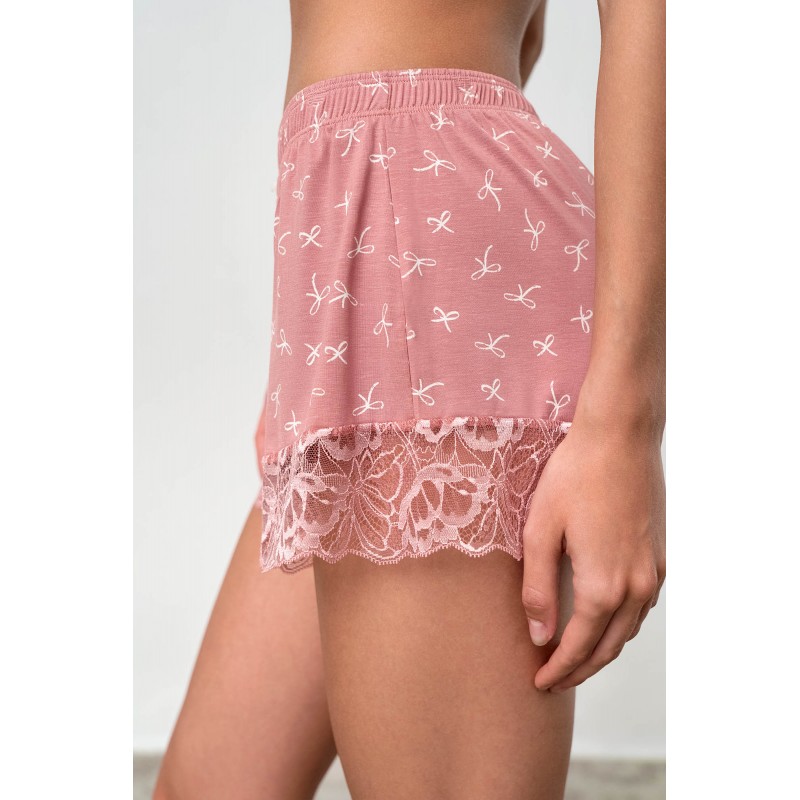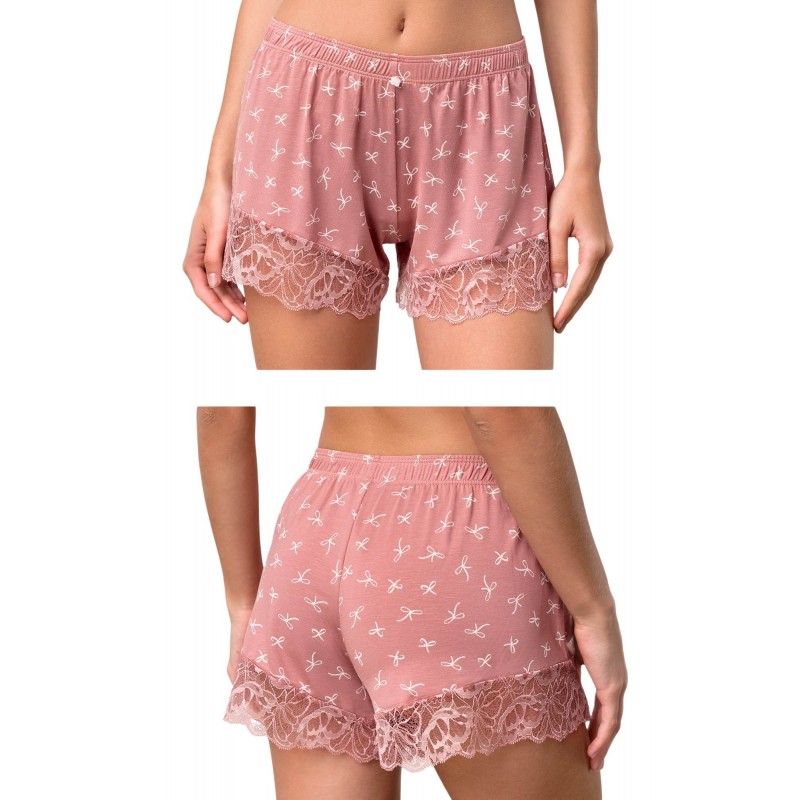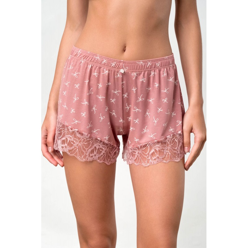 Vamp Γυναικείο Σορτσάκι Πυτζάμας Micromodal Με Δαντέλα Σχέδιο Φιογκάκια
