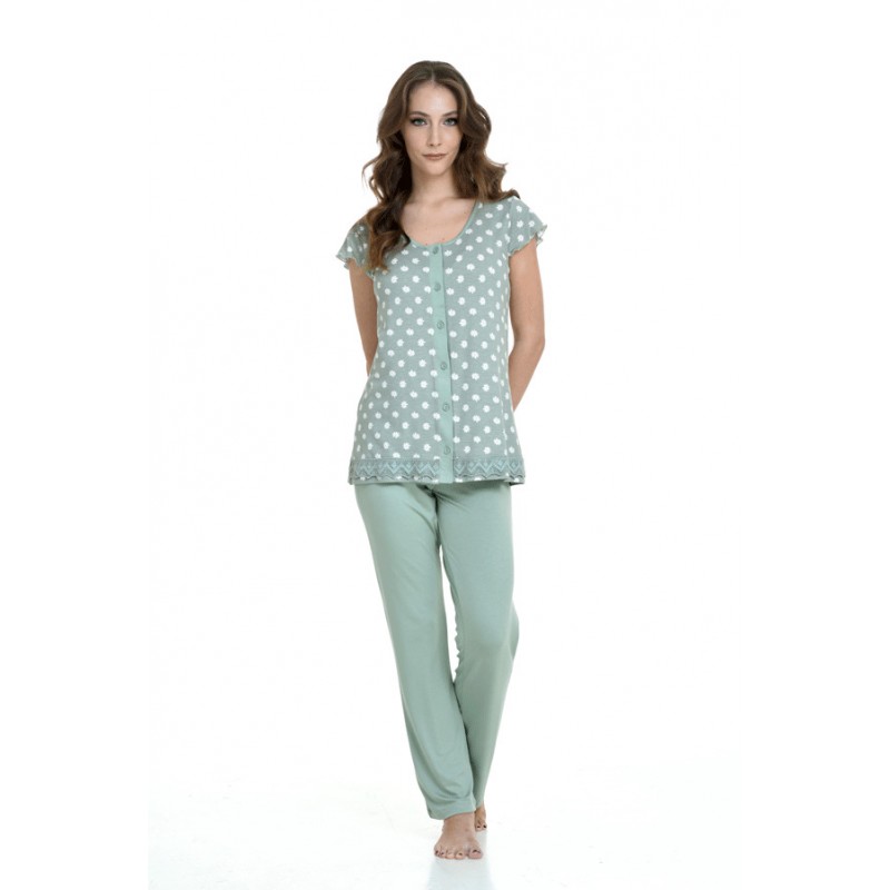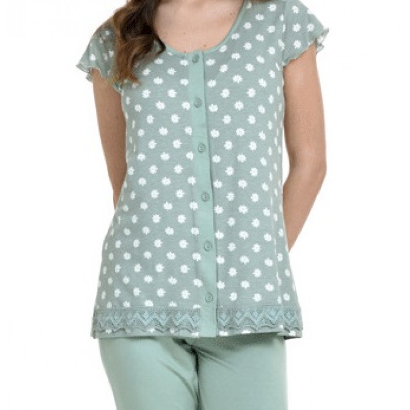 Γυναικεία πυτζάμα με σχέδιο μαργαρίτες.Η μπλούζα είναι εμπριμέ κουμπωτή με κοντό μανίκι ,συνδυάζεται με μονόχρωμο μακρύ παντελόνι . Υπεροχο σχέδιο με εντυπωσιακό συνδυασμό χρωμάτων για άνεση και φρεσκάδα ακόμη και τις πιο ζεστές ημέρες . Εξαιρετικής ποιότητας Viscose ,φιλικό στο δέρμα ,πολύ δροσερό και άνετο .Καλύπτει μεγέθη έως 2 xl . Με την εγγύηση της Zen ,η νέα collection άνοιξη – καλοκαίρι ’24 θα σας εντυπωσιάσει.